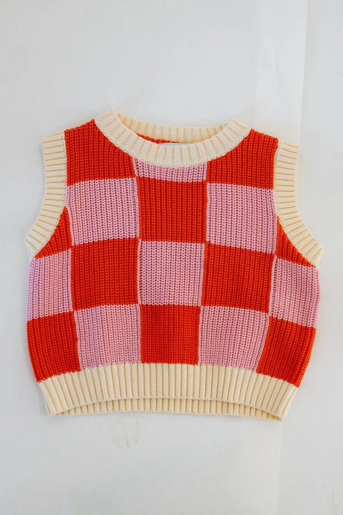 Nonno Vest - Pink + Orange Check Sunday Siblings