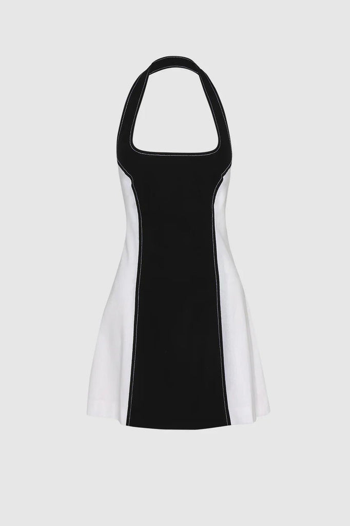 - Black and white contrast halter mini dress