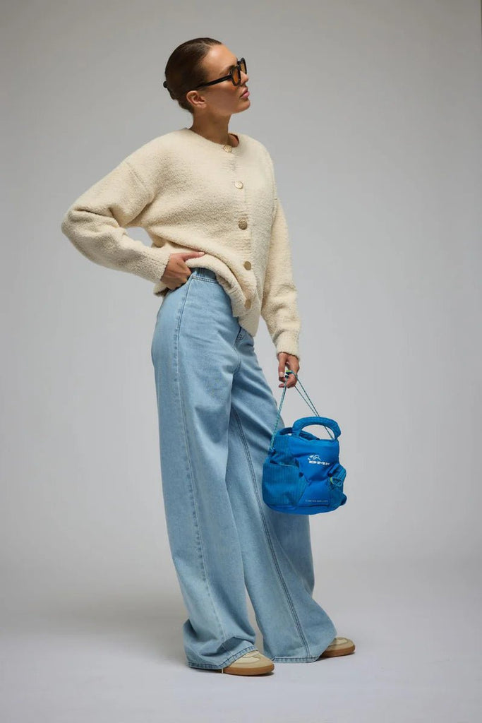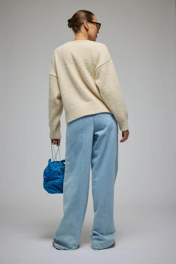 The Aime Cardigan in Milk, is made in a gorgeous fluffy knit fabric. This style features gold buttons, a relaxed crew neckline and ribbed cuffs and hem. Versatile and comfortable, the Aime Cardigan is the ideal layering piece. Wear yours with your fave AJ trackpants and sneakers or Grace Pant for an effortless leisurewear look.