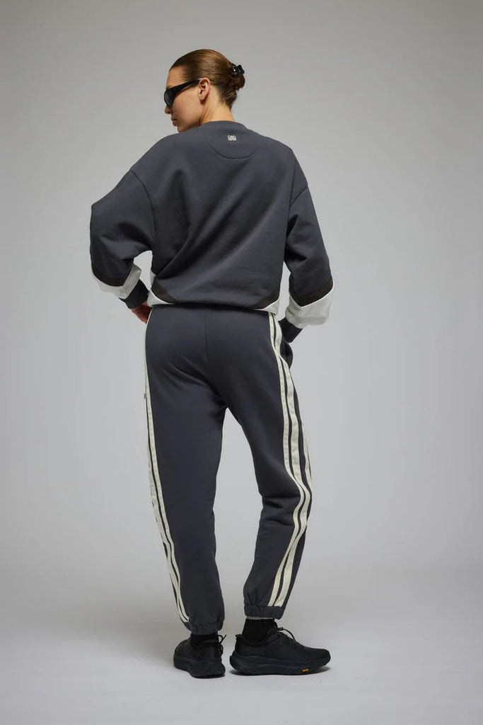 Introducing our Splice Sweatshirt in Noir, a new update to our best-selling 94 V-Neck Sweatshirt. Cut in a beautifully soft cotton brushed fleece in our signature oversized shape. This style features contrast warm white panels pairs back perfectly with our Bisous Trackpant in Noir.