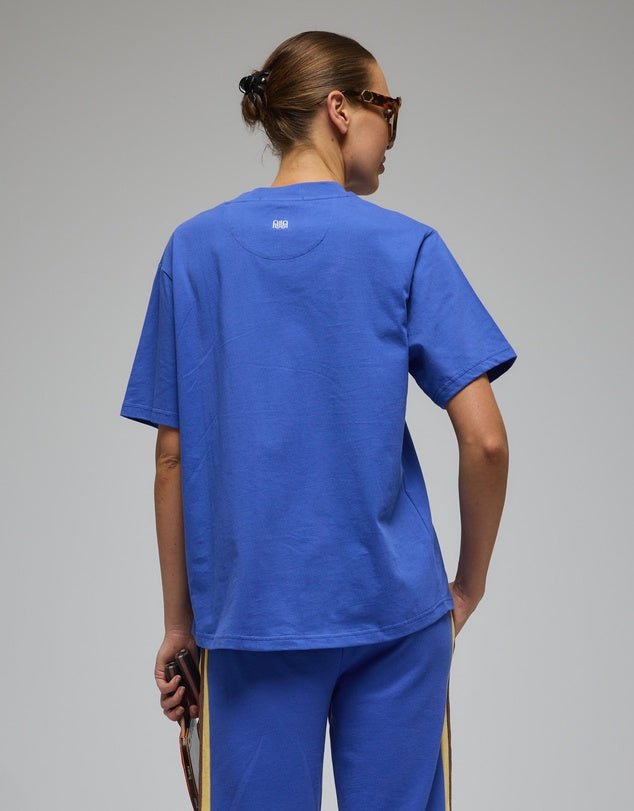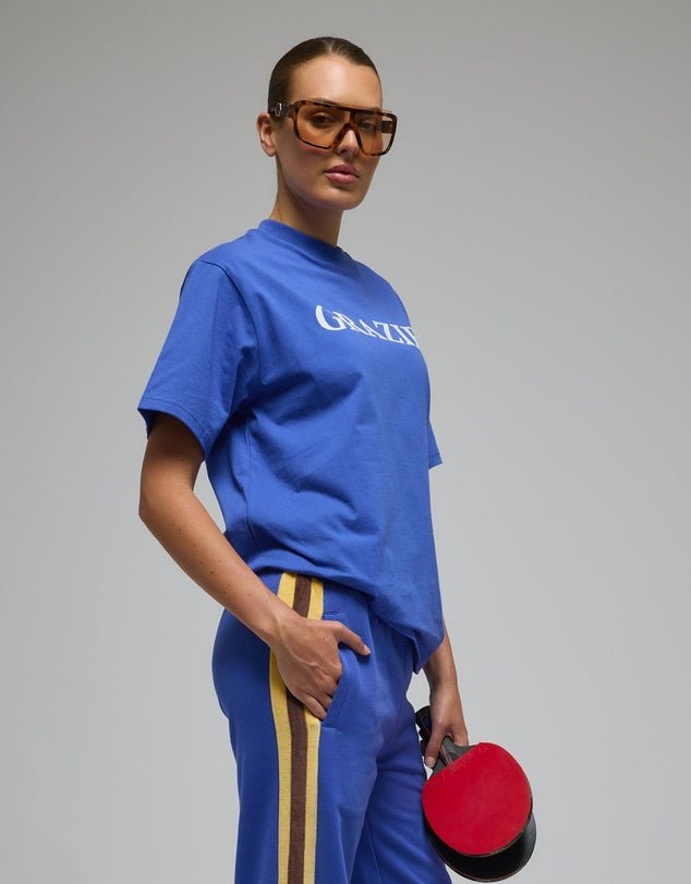 Your new must-have piece this season is our Grazie Tee in Ultramarine. Crafted from a luxurious 100% cotton , this style features a satin applique on the front. Designed for a relaxed fit, pair yours with our Vici Track pant in Ultramarine for a chic athleisure wear look.