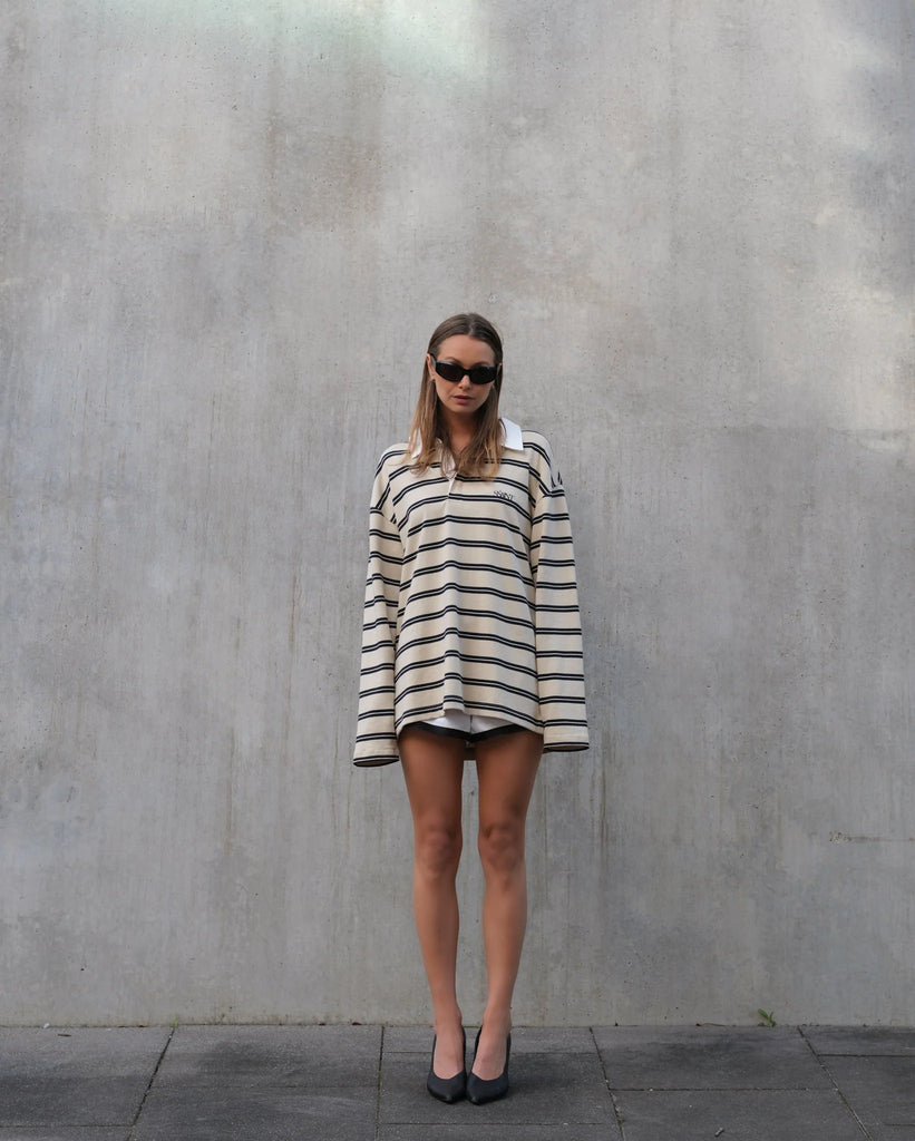introducing the RYDER RUGBY POLO – Cream & Navy Stripe